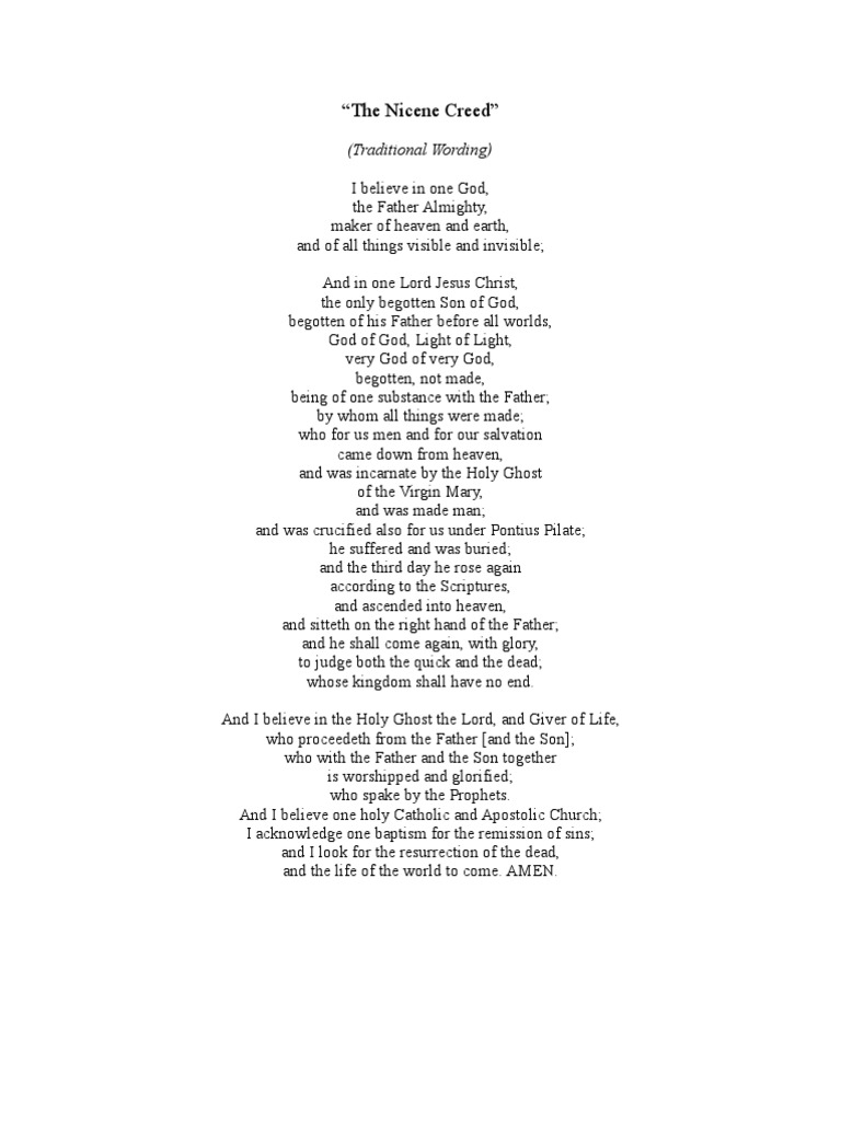 Nicene creed i believe in one god, the father almighty, maker of heaven and earth, and of all things visible and invisible.
