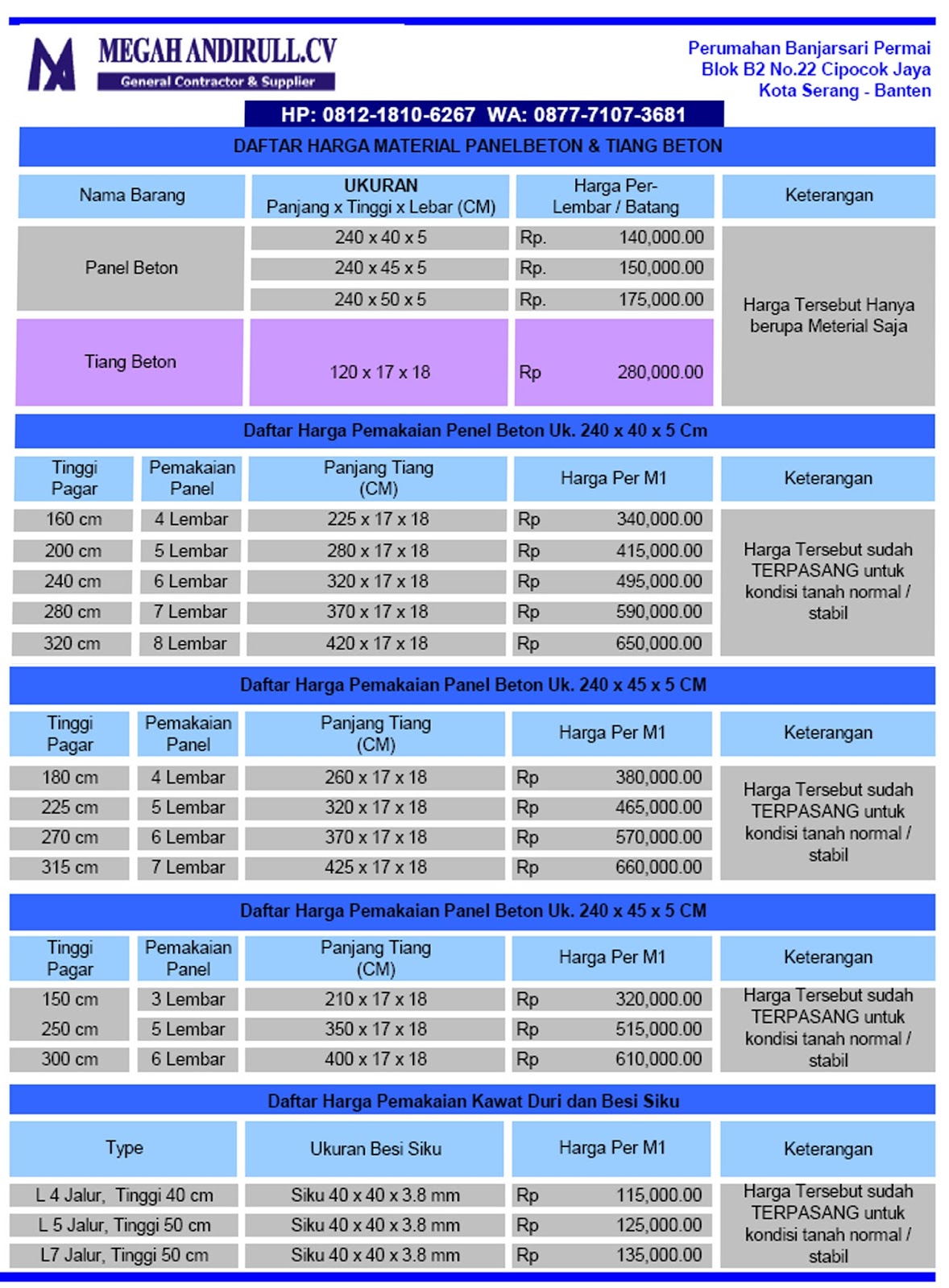 Harga pagar panel beton precast tangerang terbaru.
